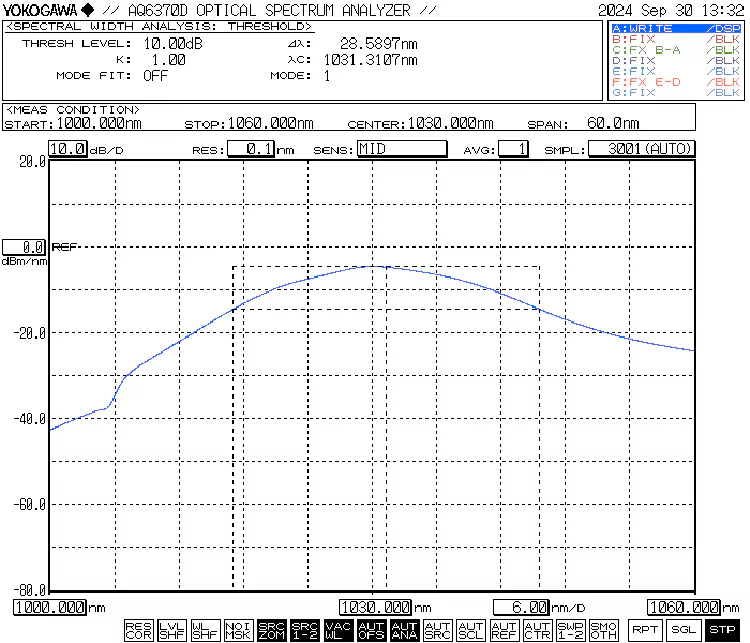 A: Vi har en kilde til ASE C-bånd 1030 nm, L-bånd 1064 nm.